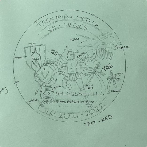We offer free artwork and design services, although we may request a $50.00 artwork deposit for your project. This deposit is non-refundable, but it will be applied to to your final payment. We will take the rough draft of your ideas and clean it up; so that it is usable for patches, coins, zap stickers, t-shirts, and more.